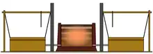The smelting process used is different from the modern mass production of steel. A clay vessel about 1.1 m (3 ft 7 in) tall, 3 m (10 ft) long, and 1.1 m (3 ft 7 in) wide is constructed. This is known as a tatara. After the clay tub has set, it is fired until dry. A charcoal fire is started from soft pine charcoal. Then the smelter will wait for the fire to reach the correct temperature. At that point he will direct the addition of iron sand known as satetsu. This will be layered in with more charcoal and more iron sand over the next 72 hours. Four or five people are needed to constantly work on this process. It takes about a week to build the tatara and complete the iron conversion to steel. Because the charcoal cannot exceed the melting point of iron, the steel is not able to become fully molten, and this allows both high and low carbon material to be created and separated once cooled. When complete, the tatara is broken to remove the steel bloom, known as a kera. At the end of the process the tatara will have consumed about 9.1 t (9.0 long tons; 10.0 short tons) of satetsu and 11 t (11 long tons; 12 short tons) of charcoal leaving about 2.3 t (2.3 long tons; 2.5 short tons) of kera, from which less than a ton of tamahagane can be produced.[3] A single kera can typically be worth hundreds of thousands of dollars, making it many times more expensive than modern steels.[4]