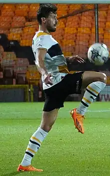 He scored two goals in 48 appearances throughout the 2021–22 season, ending an eight-year goal drought.[77] He was named as PFA Community Player of the Year for the 2021–22 season, having been a patron of the Derian House children's hospice.[78][79] He was released at the end of the 2022–23 season, having been limited to 28 appearances and missing the play-off semi-final defeat to Stockport County; he featured 125 times during his three years at Moor Lane.[80]