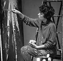 In high school DeFeo acquired the nickname “Jay,” which she used as her common name for the rest of her life. An important early mentor was her high school art teacher, Lena Emery, who took her to museums to see works by Picasso and Matisse, opening up a new world to the young artist.[3] DeFeo enrolled in the University of California, Berkeley, in 1946, studying with many well-known art professors, including Margaret Peterson O’Hagan. Fellow students included Pat Adams, Walter Askin,[4] Sam Francis, and Fred Martin.[3][5]