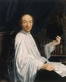 Jean-Baptiste de Santeul was born on 12 May 1630 in Paris, to a good family.[1][lower-alpha 1] His father was Claude de Santeuil, a bourgeois merchant of Paris. His uncle, Nicolas de Santeuil, was President of the Finance office of Paris, then Intendant of the Department of Beauvais for twenty years.[2] His mother was Madelaine Boucher. He was one of five children. Three of his brothers, Claude, Charles and Didier, also had distinguished careers.[3] He was first educated at the College of Clermont. He studied rhetoric under the Jesuit Father Coffard, who discovered his talent for Latin verse.[1]