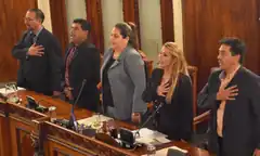 ![]() Áñez is sworn in at an extraordinary session of the Legislative Assembly, 12 November 2019. | |
