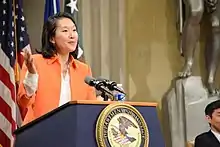 In 2014, Yang was chosen to succeed Jacqueline A. Berrien as Chair of the EEOC.[8] She was succeeded as chair by acting chair Victoria Lipnic[9] and left the commission on January 3, 2018.[10] During Yang's time as chair, the EEOC established a Select Task Force on the Study of Harassment in the Workplace to address workplace sexual harassment.[11]