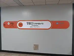 3. "Jeongbalsan". Seoul Metro. Archived from the original on 2016-08-17. Retrieved 2016-08-01.