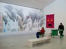Deller staged The Battle of Orgreave in 2001, bringing together almost 1,000 people in a public re-enactment of a violent confrontation from the 1984 Miners' Strike.[6][7] The re-enactment was filmed by director Mike Figgis for Artangel Media and Channel 4.[8] The Battle of Orgreave was ranked second in The Guardian's Best Art of the 21st Century list, with critic Hettie Judah calling it a "monument of sorts, the performance was at once participatory ritual, spectacle, living archive and a space to mourn".[9] In 2004, for the opening of Manifesta 5, the roving European Biennial of Contemporary art, Deller organised a Social Parade through the streets of the city of Donostia-San Sebastian, drafting in cadres of local alternative societies and support groups to participate.[10]