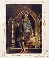 Jerusalem, subtitled The Emanation of the Giant Albion (1804–1820, with additions made even later), is a prophetic book by English poet William Blake. Jerusalem is the last, longest and greatest in scope of Blake's works. Etched in handwriting, accompanied by small sketches, marginal figures and huge full-plate illustrations, it has been described as "visionary theatre". The poet himself believed it was his masterpiece and it has been said that "of all Blake's illuminated epics, this is by far the most public and accessible".[2] Nonetheless, only six copies were printed in Blake's lifetime and the book, like all of Blake's prophetic works, was all but ignored by his contemporaries.