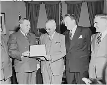 He was appointed U.S. Postmaster General by President Harry S. Truman on December 16, 1947, following the resignation of Robert E. Hannegan. He served for the remainder from the Truman's administration until January 20, 1953. During this the period, he modernized the postal service and also announced the "3 cent Gold Star Mothers" stamp in recognition of the Sullivan brothers' and his mother.[2]