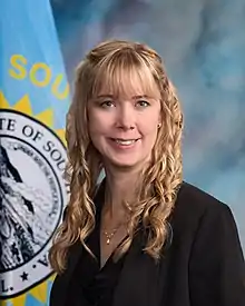 Jessica Castleberry is an American politician and businesswoman who served as a member of the South Dakota Senate from District 35. She was appointed to the senate by Governor Kristi Noem to replace Lynne DiSanto on December 31, 2019.[1][2][3] Castleberry was born and raised in Rapid City, South Dakota, where she operates preschools and has served on the Rapid City Area Schools Strategic Planning Committee.[2]