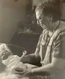Jesusita Aragón (1908–2005) was an American midwife and curandera from New Mexico. Known as Doña Jesusita, she delivered around 12,000 babies during her career. She was trained in midwifery by her grandmother and traveled by horseback to provide care to women in northeastern New Mexico. She earned her midwifery certification and moved to Las Vegas, New Mexico, where she built a house which she used as a maternity center. She was named a Santa Fe Living Treasure and received the Sage Femme Award of the Midwives Alliance of North America. The 1980 book La Partera: A Story About a Midwife is about her.