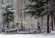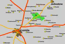 Woodland cemetery in Jeziorko village in the Northeastern part of Poland is located approximately 7 kilometers (4.3 mi) from the town of Łomża along Route 668. The remains of victims murdered by the Nazi troops rest in the cemetery which is among very few with almost completely documented history of events that happened during the Nazi occupation.