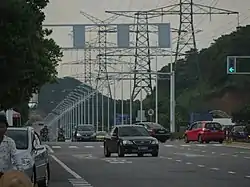 Jiangmen has a mature network of inter-city and intra-city highways and expressways, whose total length has reached 10,084.97 kilometres (6,266.51 mi) as of 2016.[22] G15 Shenyang–Haikou Expressway travels at the north, connecting downtown Jiangmen to three of its administrative divisions Heshan, Kaiping and Enping, as well as nearby cities Yangjiang, Zhongshan and Foshan. S32 Western Coastal Expressway goes along Jiangmen's coastlines, linking Zhuhai at the east and Yangjiang at the west. G94 Pearl River Delta Ring Expressway, S20 Guangzhou-Zhongshan-Jiangmen Expressway, G2518 Shenzhen-Cenxi Expressway and S47 Guangzhou-Foshan-Jiangmen-Zhuhai Expressway run through northeast Jiangmen. S49 Xinhui-Taishan Expressway connects Taishan and joints S32 at the south.