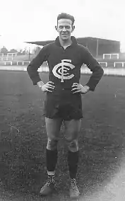 Clark made his VFL debut in round 7, 1943 against Melbourne Football Club at Carlton's home ground Princes Park, and played in two premiership teams; the infamous 1945 "Bloodbath" Grand Final against South Melbourne, and the one-point victory against Essendon in 1947 in which he was generally considered Carlton's best player on the ground for his strong defensive and dashing rebound play in the backline.[3][4] Clark won Carlton's best and fairest award in 1951 and promptly retired from VFL football to accept the captain-coach role with Bendigo Football League's Echuca Football Club.[1]