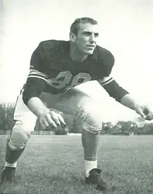He earned All-America and All-Big 10 honors as a senior and Hawkeye team captain in 1957. In a 1957 game against Minnesota he caught nine passes for 164 yards and two touchdowns in a 44-20 Iowa victory.[1]