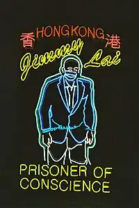 - "Exhibition of neon art - "Jimmy Lai in chains"".