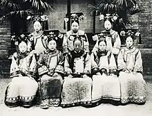 In 1894, Jingrong became a wife of grace bulwark duke Zaize, adopted son of Yixun, the second in Prince Hui of the first rank, at the age of 28. Although Zaize requested to choose a date of his wedding in 1888,[3] when Jingrong had attended the Elegant Women Selection and had been officially approved as his primary consort by Empress Dowager Cixi, the wedding was delayed until 1894.[4] Zaize was promoted to grace defender duke after the marriage. Her marriage turned as a successful one. Jingrong was admired by Zaize for her beauty, youthfulness and kindness.[5] Apart from her, Zaize took lady Liu and lady Zhu as concubines.[6]