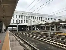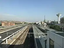 Jinhua railway station has 15 tracks and 10 platforms, divided into Ordinary train yard and High-speed train yard.[30] Trains on Shanghai–Kunming Railway and Jinhua-Qiandaohu railway uses the ordinary train yard. The yard has 8 tracks, which includes 3 mainlines and 5 tracks for passenger services. There are 3 tracks to the inbound-adjacent Jinhua East railway station, and additional tracks connect the Jinhua Locomotive Turnaround Depot and Coach Depot;[31] There are two tracks to outbound-adjacent Bailongqiao railway station, 1 for either Zhumaguan and Old Jinhua railway station. Two single tracks diverse to two opposite directions from the mainlines of Shanghai–Kunming Railway at the outbound-throat of the ordinary train yard, which means trains from Jinhua East to Zhumaguan or trains from old Jinhua station to Jinhua East have to cross either throat (outbound or inbound) of the ordinary train yard.[32]