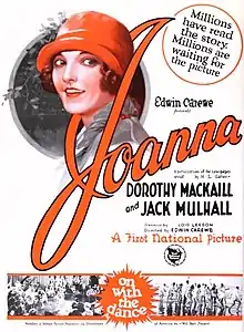 Joanna is a 1925 American silent romantic comedy film produced and directed by Edwin Carewe and distributed by First National Pictures. The film was based on the short story "Joanna, of the Skirts Too Short and the Lips Too Red and the Tongue Too Pert" by Henry Leyford Gates.[1] The film starred Dorothy Mackaill and Jack Mulhall and marked the first motion-picture appearance of Mexican actress Dolores del Río.