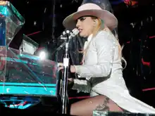 Gaga was the headliner of the Super Bowl LI halftime show, where along with past material, she performed "Million Reasons" on the piano.[101] She was also a main headliner at the 2017 Coachella Festival. Her setlist included "John Wayne", "A-Yo" and "Million Reasons" from the album.[102] In 2018, Gaga performed "Joanne" and "Million Reasons" on the piano at the 60th Annual Grammy Awards, where she was joined on stage by Mark Ronson, who played guitar.[103]