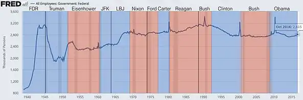 | Franklin D. Roosevelt (data available for 1939–1945 only) | Democratic | 1933–1945 | 29,923 (for January 1939) | 41,446 | 5.35% (annual average from January 1939 to April 1945) |