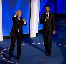 On May 30, 2008, it was reported by The Washington Times that likely Democratic nominee Obama asked Biden to play a "more prominent" and "deeply involved" role in his campaign, with some speculating that Biden was on Obama's shortlist of vice presidential candidates.[72] On August 23, 2008, the Obama campaign announced that Biden would become Barack Obama's running mate.[73][74]