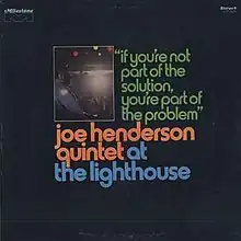 If You're Not Part of the Solution, You're Part of the Problem is the eleventh album by American jazz tenor saxophonist Joe Henderson. It was rereleased in 2004 as At the Lighthouse, with an alternative album cover listing the personnel in place of the original title and several extra tracks. Henderson’s live band includes trumpeter Woody Shaw, keyboardist George Cables, bassist Ron McClure, tumbador Tony Waters and drummer Lenny White.