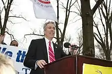 Walsh won the Republican nomination for Illinois's 9th congressional district and faced longtime Democratic liberal incumbent Sidney R. Yates, who was 87 years old, in the general election.[15] Walsh campaigned by riding his bicycle through the district. He engaged in self-admitted "outrageous" stunts during the campaign which included paying the doorman at Yates's Chicago apartment building $1,000 for being the first person to spot Yates in his district, and throwing a birthday party for Yates that included a cake decorated with 87 candles.[8][16] Walsh denied he was trying to play the "age card". Yates responded that his own age was not a factor, and that Walsh was too young and inexperienced for the job. Yates also commented that the district was too liberal for Walsh, and tried to tie Walsh to the conservative Speaker of the House, Newt Gingrich. In response, Walsh distanced himself from Gingrich and said he considered himself a "moderate Republican;"[8] he also ran as a pro-choice candidate in the liberal-leaning district, and described himself as "the most gay friendly Republican around".[17][18] Yates defeated Walsh 63–37%.[19]