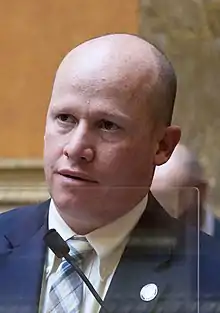 After graduating from college, Ferry worked as a banker at Zions Bancorporation in Salt Lake City. Ferry later returned to Corinne, Utah to work on his family's farm with his father and uncle.[2][3] Ferry has also served as the chairman of the Box Elder County Republican Party. In 2018, he was elected to the Utah House of Representatives, assuming office on January 2, 2019, and succeeding Scott Sandall.[4][5][6] Ferry appeared at the signing ceremony of the 2018 United States farm bill.[7] He has expressed concern about the potential for the Great Salt Lake to dry up, comparing the effect to "a potential environmental nuclear bomb".[8]