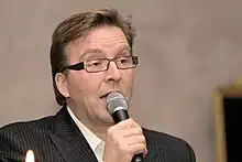 Joel Hallikainen (born 11 October 1961 in Turku, Finland) is a Finnish musician and entertainer. Hallikainen worked in Wärtsilä shipyard as a welder in late 1970s and played guitar in a new wave band Korroosio. In 1990 Hallikainen started his solo career as a Schlager singer.