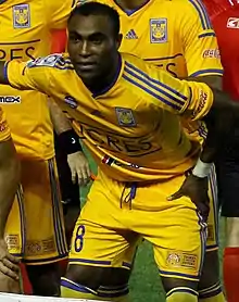 A right winger, his key attributes are his explosiveness and potence. A strong and accurate finisher with good aerial presence, Guerron can also play as a striker.[1] Besides his native Ecuador, he has played in countries such as Argentina, Spain, Brazil, China and Mexico. He was awarded as the 2008 and 2015 Copa Libertadores MVP.