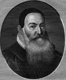 Johann Jakob Breitinger studied in Herborn, Marburg, Franeker, Leiden, Heidelberg und Basel. He was a pastor in Zumikon, Albisrieden and then Professor of Logic and Rhetoric at the Collegium Humanitatis.[1] Afterwards pastor to St. Peter, the Grosse Rat (parliament of the city) elected him in 1613 to pastor at the Grossmünster and thus to the Antistes of the Zürich Church. As the sixth successor to Zwingli in the leadership of the Zürich Church, he introduced a day of prayer and was known for his sermons, in which he reprimanded foreign military service, bribery, buying offices and national debt.[2] He demanded the improvement of discipline and custom among the people and a ban on the theater.[3] He promoted elementary school, Sunday children's teaching and church singing in town and country and campaigned for poor relief and welfare.[4] On behalf of the authorities, he carried out the first census of the Zürich area after the Reformation in 1634.[5]