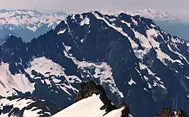 Johannesburg Mountain is one of the most famous peaks in the North Cascades of Washington state. Though not one of the top 100 peaks in the state by elevation,[3] nor one of the top peaks as ranked by topographic prominence,[4] Johannesburg is notable for its large, steep local relief, and particularly its immense, dramatic Northeast Face, which drops 5,000 feet (1,525 m) in only 0.9 miles (1.4 km).