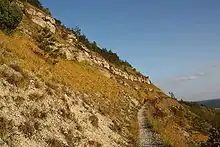 The Johannisberg is located north of Jena-Lobeda on the eastern bank of the Saale. Together with the Kernberg to the north and the Jena Hausberg, it forms the southeast front of the middle Saale near Jena. Its steep slopes are formed by the over 100 m thick lower Muschelkalk, popularly also called Wellenkalk, from which several solid limestone banks emerge (see also Geology of the Middle Saale Valley).