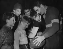 From 1950[22] to 1953, the 1.77 metre, 76-kilo[23] Australian played for Melbourne's Footscray Football Club (now the Western Bulldogs)[24] in the Victorian Football League (VFL), which later became the Australian Football League (AFL). He scored one goal in 32 games played for the club.