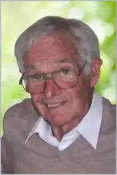 Barrett initially attended Frankston State School from 1935, where he represented his school on official occasions.[2][3] He transferred to Frankston High School[4] in 1941.[2] In this year he joined the Australian Air League, where he was involved in building model planes[5] and observing flying objects in the airspace due to an impending Japanese invasion of Australia during World War II.[2] In the military-style organization, he achieved the rank of Company Squadron Commander in 1942.[6] In 1944 he passed the examination for the award medal of the Royal Life Saving Society Australia.[7] Barrett represented the school as Senior Prefect and has also been a 'House' Captain as well as Captain of the School Cricket, Football, Swimming and Athletic Teams.[8] He finished high school with an Honor Certificate in 1945.[4]