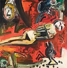 Bellany's work is included in the Museum of Modern Art, New York,[14] the Metropolitan Museum, New York,[15] the Yale Center for British Art, New Haven, Connecticut[16][17] and Tate Britain, London. Another place where his work is featured is the National Portrait galleries. Additionally some of his works are held in Scotland by the National Galleries of Scotland and also by East Lothian Council reflecting his generosity to the local communities he lived in.[18]