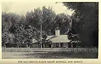 Chisum died in Eureka Springs, Arkansas, on December 23, 1884, aged 60, due to complications from surgery to remove a growth from his jaw. He was unmarried and left his estate worth $500,000 to his brothers Pitzer and James. Chisum had an extended family living with him at the South Springs ranch in Roswell, and this family, along with hired help, often numbered two dozen at the main ranch headquarters. Chisum's niece Sallie Lucy Chisum, daughter of his brother James, became a beloved figure in the area, where she lived until 1934. Sallie kept a diary or journal that has historical importance because of its references to Billy the Kid and Pat Garrett, both of whom she knew. She and John Chisum are honored by statues to their memory in Artesia and Roswell, New Mexico.[8][9] In 1958, he was inducted into the Hall of Great Westerners of the National Cowboy & Western Heritage Museum.[10] John Chisum fathered 2 daughters with his slave mistress Jensie. When Chisum moved west, he took Jensie and their two daughters to Bonham, Texas; bought them a house and left money to care for the girls. His eldest daughter Almeada “Meady” Chisum went on to marry Bob Jones, prominent rancher of Southlake, Texas. Among their grandchildren is Dr. William LaRue Jones, Professor Emeritus of Orchestral Studies at the University of Iowa and current music director of the Ottumwa Symphony Orchestra.[11]