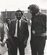 Conyers was critical of President Richard Nixon during his tenure. He was listed as number 13 on President Nixon's enemies list during the president's 1969–74 presidential tenure. The president's Chief Counsel described him as "coming on fast", and said he was "emerging" as a "black anti-Nixon spokesman".[27][28] Conyers, who voted to impeach Nixon in July 1974,[29] wrote at the time,