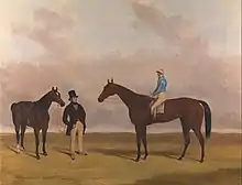 Day was also closely associated with the Marquess of Hastings, a young aristocrat who had already spent most of a huge inheritance by the time Day trained his filly Lady Elizabeth in 1866. Lady Elizabeth was an outstanding two-year-old, winning twelve of her thirteen races and Hastings backed her with what remained of his fortune to win the 1867 Derby. The filly ran unplaced in the race and Hastings was ruined.[2] Day was accused of knowing that the filly had lost her form, and of misleading Hastings and others as to her condition while wagering heavily against her. When Henry John Rous made allegations about Day's behaviour in a letter to The Times, the trainer responded by bringing an action for libel.[3] The anticipated court case did not materialise as Rous issued a qualified apology.[4]