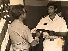 During 2013, attempts were made by an atheist to join the military as a chaplain.[91] In July 2013, the U.S. House passed a measure, sponsored by Fleming, that bars the Defense Department from appointing atheist chaplains. Fleming said, "The notion of an atheist chaplain is nonsensical; it's an oxymoron." Democratic Congressman Rob Andrews of New Jersey said that it was "wrong" to tell an irreligious service member that they "must go to a mental health professional in order to receive counseling, rather than someone who comes from their philosophical faith or tradition."[92] Fleming ended the debate by saying, "an atheist chaplain is the last person in the world that a dying soldier should meet with when they need that last moment of counseling in their life." The amendment passed into the 2014 House DOD appropriations bill[93] For his work on religious freedom and material support of the military chaplaincy during his tenure on the House Armed Services Committee, Fleming was given the first ever Torchbearer for Religious Freedom award in 2014, by the Chaplain Alliance for Religious Liberty.[94][95][96]