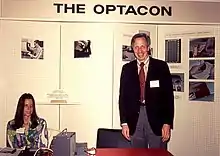 ![]() Linvill with his daughter Candy demonstrating the Optacon in 1974 | |