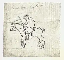 ![]() A contemporary drawing of Glenbucket during the 1745 rising; he was described as riding a "little grey Highland beast".[1] | |