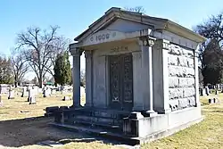 The John Green Mausoleum at Morris Hill Cemetery in Boise, Idaho, is an eclectic entombment designed by Tourtellotte & Co. and constructed in 1909. The mausoleum is made of stone and shows a Romanesque influence with geometric forms. Bronze doors opposite a single window are the only fenestrations, and corner pilasters frame the structure. A parapet stairway extends beyond an outset gable above the entrance. The mausoleum was added to the National Register of Historic Places in 1982.[2]