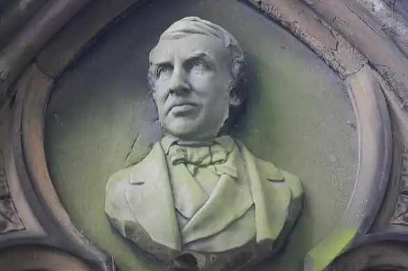![]() A bust of John Hill Burton as portrayed on his wife's grave in Dean Cemetery in Edinburgh (carved by William Brodie in 1881) | |