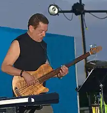John Gregory Lee is the son of an African Methodist Episcopal (A.M.E.) minister, Rev. John W. Lee, and Harriet Holland Lee, who was a career social worker. He grew up in Greenwich, Connecticut, Amityville, New York, and Philadelphia, Pennsylvania. John began String Bass lessons in 1962 with Carolyn Lush. At Philadelphia's Overbrook High School, John met drummer Gerry Brown, with whom he also studied with at the Philadelphia Musical Academy (which is now the University of the Arts)[1] from 1970 to 1972. In 1971 Lee also began performing with Carlos Garnett and Joe Henderson, and toured with Max Roach[1] thru the spring of 1972 while still a student in Philadelphia. In August 1972 he and Brown relocated to Europe, with Den Haag, Holland as their base. Together they toured Europe and recorded in bands led by Chris Hinze, Charlie Mariano, Philip Catherine, Joachim Kühn, and Jasper Van't Hof. Lee moved to New York City in October 1974 and worked with Joe Henderson, Lonnie Liston Smith, and Norman Connors until joining The Eleventh House with Larry Coryell[1] in December 1974. In 1975 John Lee and Gerry Brown signed a recording contract with Blue Note Records and formed a working band of their own. In 1977 they moved over to Columbia Records. Lee also began producing records in 1977. From 1982 to 1984, Lee worked with McCoy Tyner.[1] In July 1984 Lee became Dizzy Gillespie’s bassist, touring and recording with Dizzy's Quintet, his Big Band, his Grammy winning “United Nation Orchestra”,[1] and the “Back to the Future Band” that Dizzy co-lead with Miriam Makeba until January 1993 when Makeba died.[2]