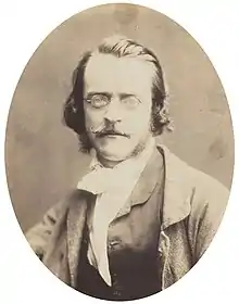 Leighton was born in 6 Devfours Place, St James Westminster, Middlesex. He remained single for the majority of his life, living in an intergenerational household and working as an artist, primarily illustrations for Book covers, working under the pseudonym Luke Limner. His talent for design found early expression in the publication Suggestions in Design ... for the Use of Artists and Art Workmen (1852). This was a work that expounded Leighton's values and beliefs with regard to the history of design. He used the ornaments and designs repeatedly in the thirty years after its publication with regard to illustrations within books, and for many hundreds of drawings for book cover designs.[2] In May 1863, he delivered a lecture On Japanese Art at The Royal Academy of Arts.[3] He is buried in the Leighton family tomb in the churchyard of St Mary's Church, Harrow on the Hill, which he designed in 1867. His tomb was listed Grade II on the National Heritage List for England in April 2016.[4]