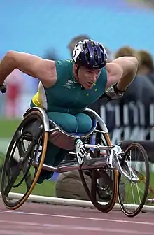 He participated in the demonstration wheelchair 1500 m event at the 2000 Sydney Olympics, but crashed 1,150 metres (3,770 ft) into the race.[11] He competed as a T54 athlete at that year's Paralympics, where he was part of the Australian team in the 4x400 m relay, reached the semi-final of the 1500 m event, was disqualified in the semi-final of the 5,000 m event after a crash for "obstruction of the track", came ninth in the 10,000 m event, and was the best-placed Australian man in the marathon in his classification, finishing twelfth.[21][22][23][24][25]