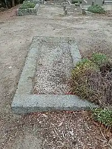 - A 2014 photograph reveals that MATHER is engraved on the face of the granite border stones, now obscured by the existing ground level. Findagrave.com accessed 24 Aug 2023