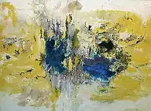 Despite his commitments to work and family, Matsudaira was a dedicated artist, continually experimenting with new techniques, materials, and means of expression. A 1953 oil painting, Self-portrait (Injured in a foxhole), is figurative yet highly symbolic, representing the foxhole in which he was nearly killed as a place of both death and rebirth. His art evolved toward abstraction, with works such as Adoration (1955) and Quiet Motion and Blue (1961) having a sombre, introspective quality.[6][7]