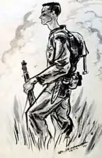 According to the Marine Corps history journal Fortitudine, McDermott was so prolific that his contemporary style pen-and-ink sketches became easily recognizable to both Marines, from published work in Leatherneck Magazine, and civilians, from glossy copies supplied by the Marine Corps to the nation's press.[8] His wartime art appears in World War II history books and is displayed at the Pentagon and the National Museum of the Marine Corps.