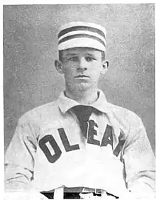 Early in the 1892 season, Von der Horst hired outfielder Ned Hanlon of the Pittsburgh Pirates to manage the Orioles.[16] The Orioles lost over 100 games, finishing last by a wide margin. Of the seventeen players Hanlon inherited, he kept only three: pitcher Sadie McMahon, catcher Wilbert Robinson and McGraw.[17] According to baseball author Burt Solomon, "Hanlon saw that McGraw's value to the Orioles came less from his agility than from his intensity. He never gave up and had contempt for anyone who did, John McGraw could drive his teammates to another level of play."[18] But little of that showed in the 1892 season, in which McGraw hit .267 with 14 stolen bases while playing a variety of positions.[19] During the 1892–93 offseason, McGraw attended Allegany College (soon to be renamed St. Bonaventure), trading his skills as a baseball coach for the right to attend without paying tuition.[20]