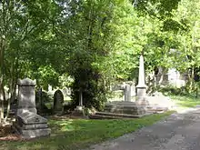 Goulty's pastorate at Union Chapel ended in 1861 with his retirement,[16] although in 1868 he founded a Congregational chapel at Sudeley Place in the Kemptown area of Brighton. (This closed in 1918 and was converted into a cinema by John Leopold Denman and later into a residential building.)[22] He died in Brighton on 18 January 1870 and was buried at the Extra Mural Cemetery.[16] His grave is in the unconsecrated southwest section of the cemetery and is marked by an obelisk-style memorial.[23] His son Horatio Nelson Goulty, who predeceased him, was also active in public life in Brighton, principally as an architect but also as a supporter of hospitals and schools.[3]